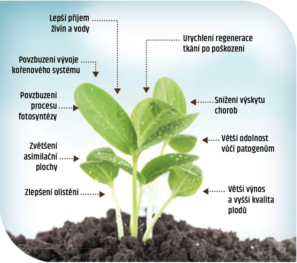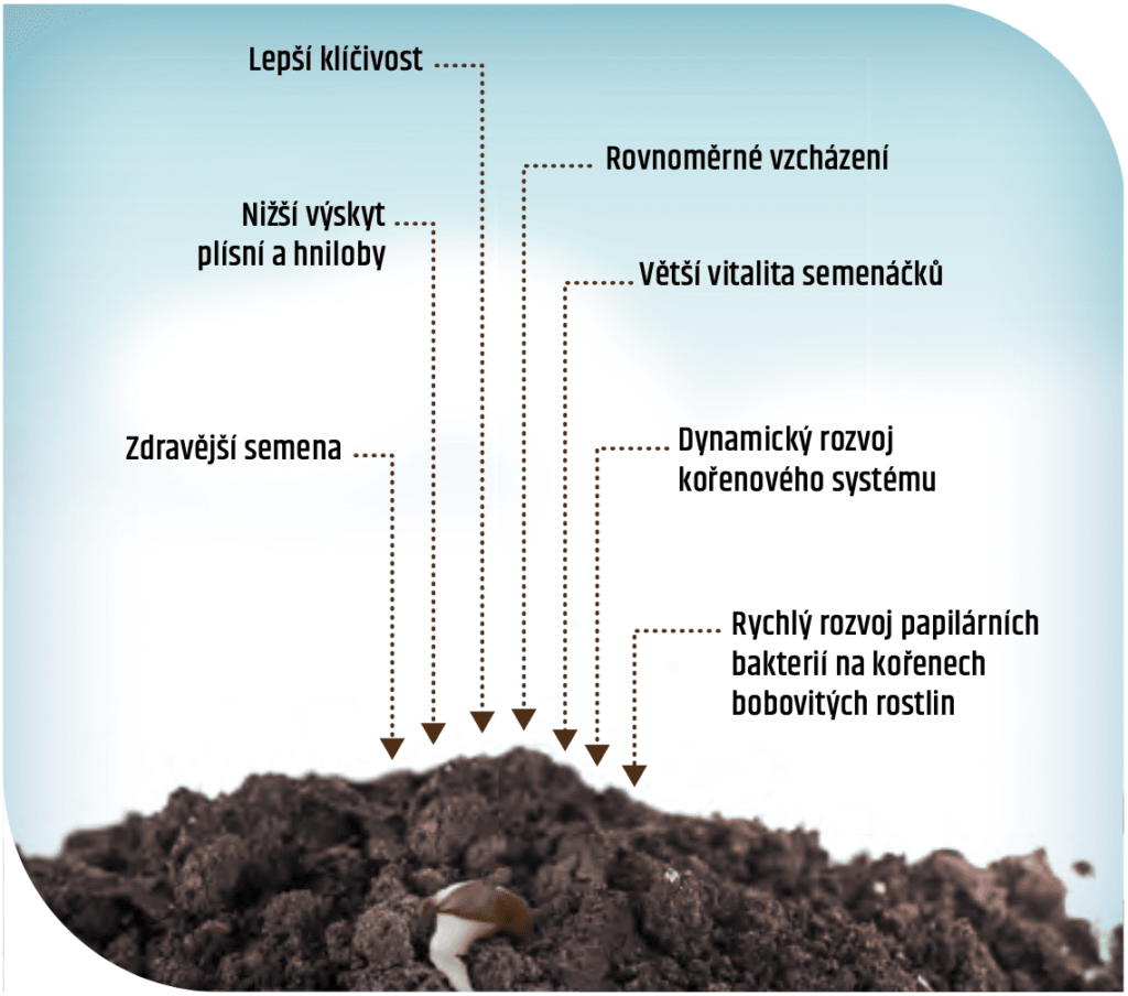 Přispívá k výraznému zlepšení klíčivosti a rovnoměrnosti vzcházení rostlin a rozvoji kořenového systému.