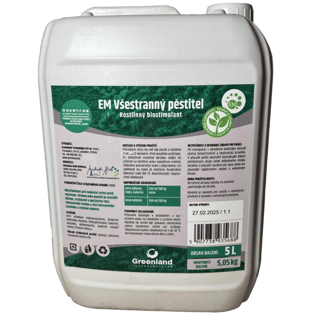 EM® Všestranný pěstitel je rostlinný biostimulant určený ke stimulaci rozvoje kořenového systému a posílení imunity rostlin rostlin mořením semen a postřikem v počátečním vegetačním procesu.